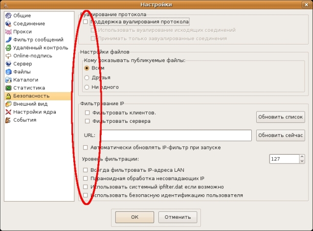 9. В пункте «Безопасность» убираем все галки, где бы они ни стояли, а также выбираем вариант «Всем» в разделе «Кому показывать публикуемые файлы».