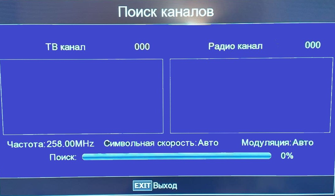 • Модуляция: 256QAM (выбор значения производится кнопкой «<» или «>»)