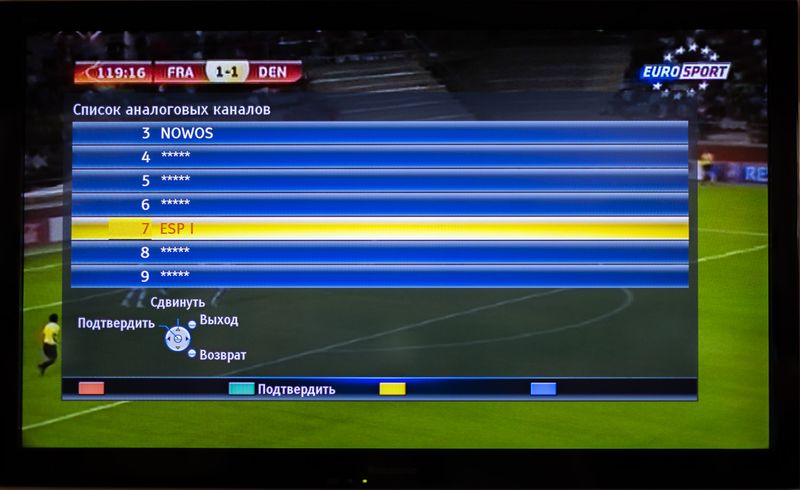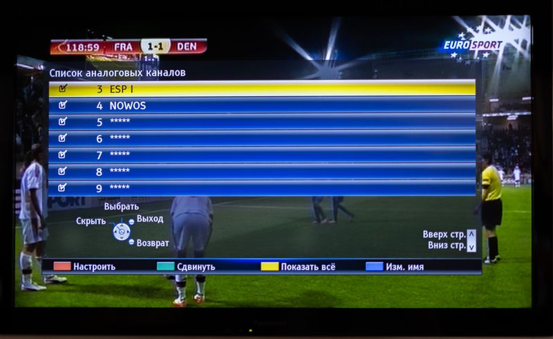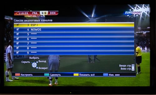 3. В появившемся списке находим необходимые каналы. Нажимаем на пульте на ЗЕЛЕНУЮ кнопку "Сдвинуть".